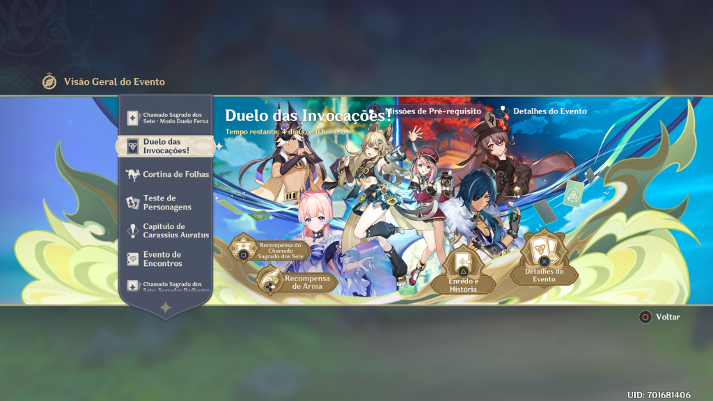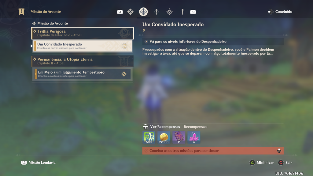 Missões Diárias- Missões Diárias são 4 missões para ganhar primogems e reiniciam a cada 24h