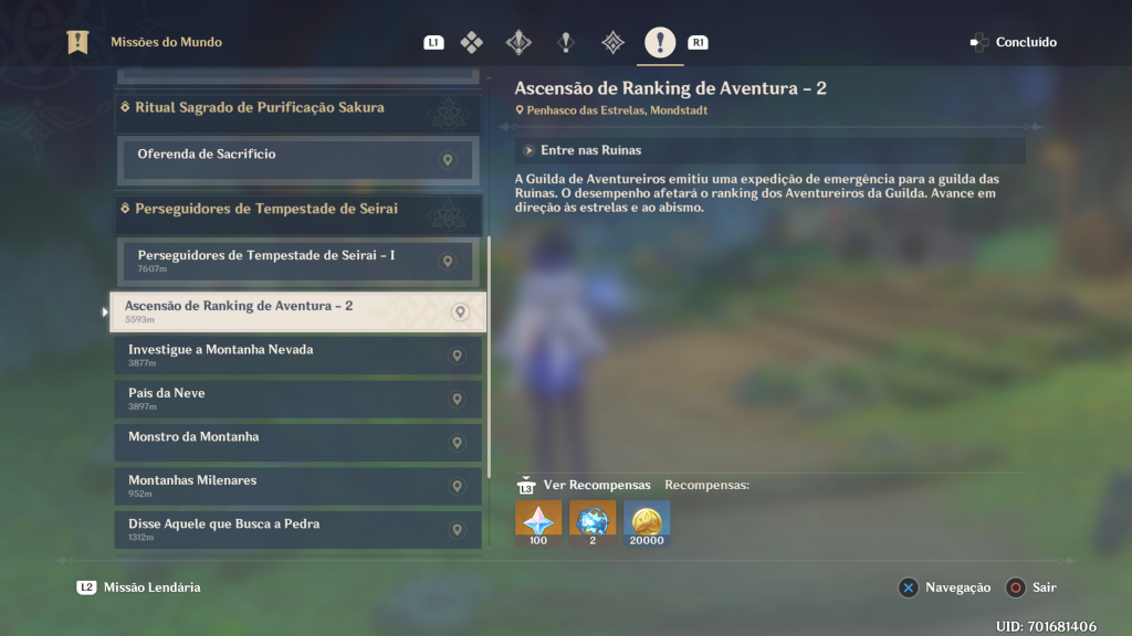 Missões de Subida de Mundo- Missões de Subida de Mundo são missões para aumentar o nível do mundo e desbloquear recompensas de Rank de Aventura